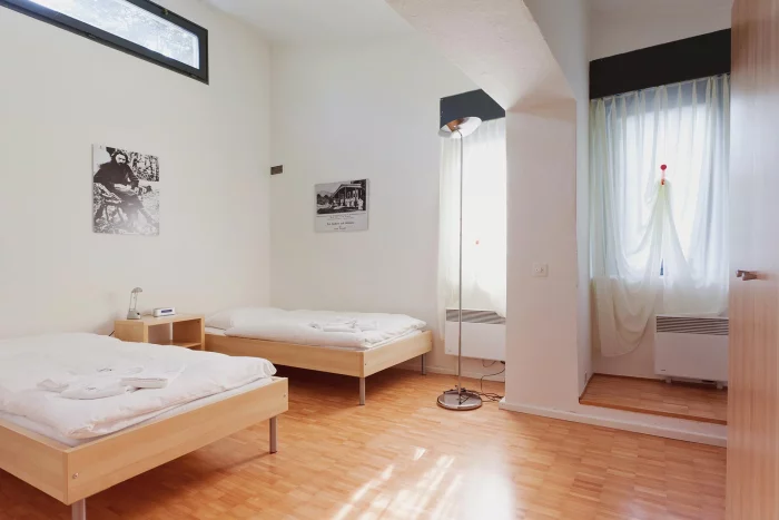Casa Gioia, which used to be annexed to the adjacent Casa Giovanna, is situated at the foot of the Monte Verità property. It comprises several single rooms and one double room (queen size bed) with a small living area and two bathrooms. It is particularly suitable for small groups, students or families.