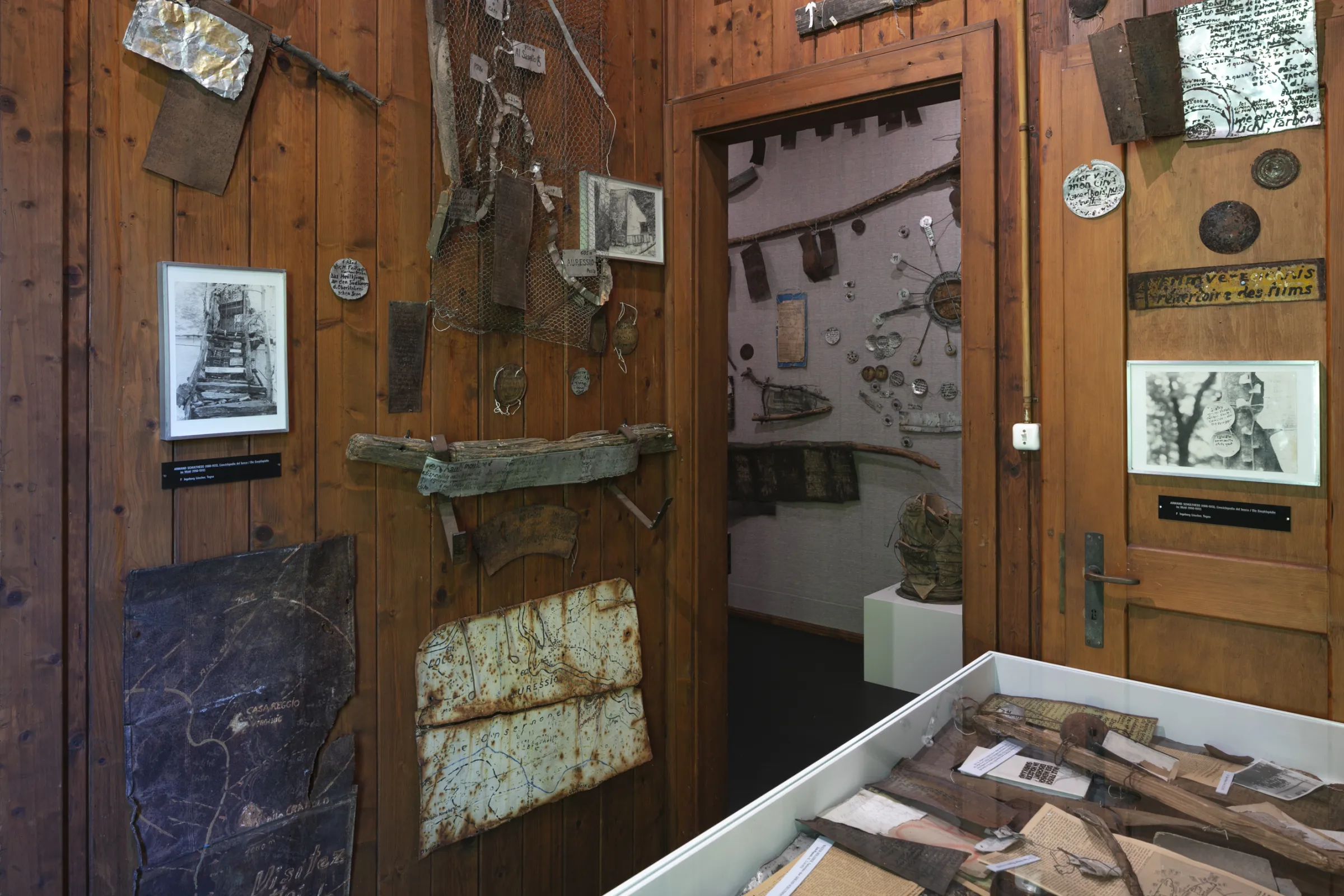 The additional exhibition features a modern style which is completely different from that used by Szeemann, so as to avoid any confusion between the two. Screens, audio stations and multimedia presentations of documents creates a contrast to Szeemann's installation, providing a context for it and highlighting different elements. Given the exceptional wealth of materials in Szeemann's exhibition, only a small number of original objects is displayed in cases; instead, the emphasis is multimedia elements.